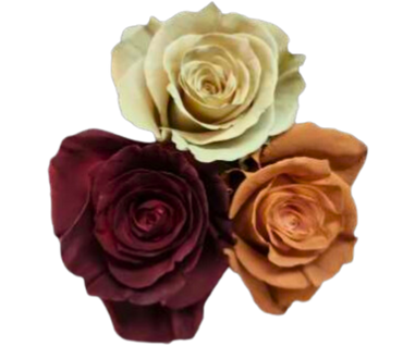 Trio di Rose Tinte in Bianco crema, Rame e Marrone.