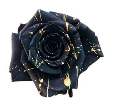 Rosa Tinta con petali Neri e con schizzi Dorati.