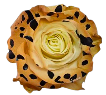 Rosa Tinta con centro color Crema e petali color Oro con macchie Nere leopardate.