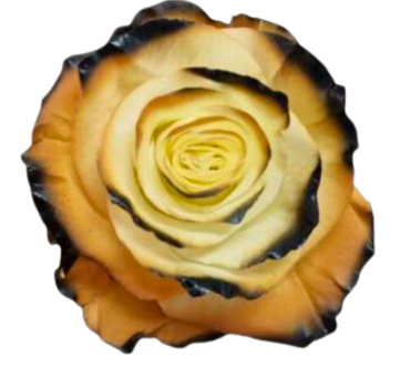 Rosa Tinta in Giallo Dorato e color Crema con petali esterni con punta Nera.