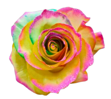 Rosa Tinta in Giallo con bordi Rosa e glitter.
