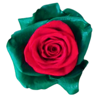 Rosa Tinta con centro Rosso con petali esterni Verdi.