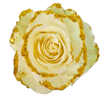 Rosa Tinta con petali color Crema con bordi glitterati Oro.