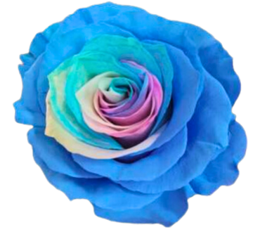 Rosa Tinta con petali esterni in Azzurro e con centro color Pastello Rosa e Verde.